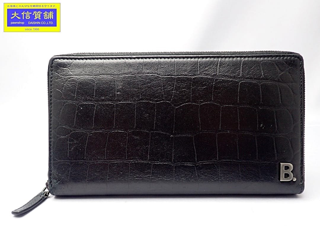 - BALENCIAGA バレンシアガ 601352 メンズ ラウンドファスナー長財布 ブラック クロコ型押し 中古B 【送料無料】 A-8735
