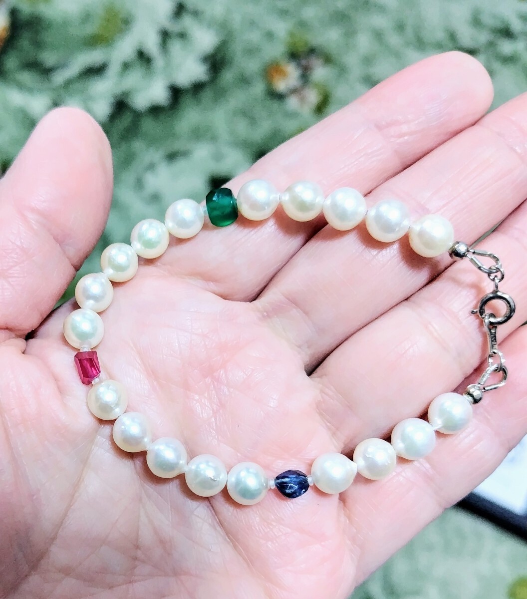 - アコヤ真珠 ルビー カイヤナイト オニキス silver925ブレスレット パール