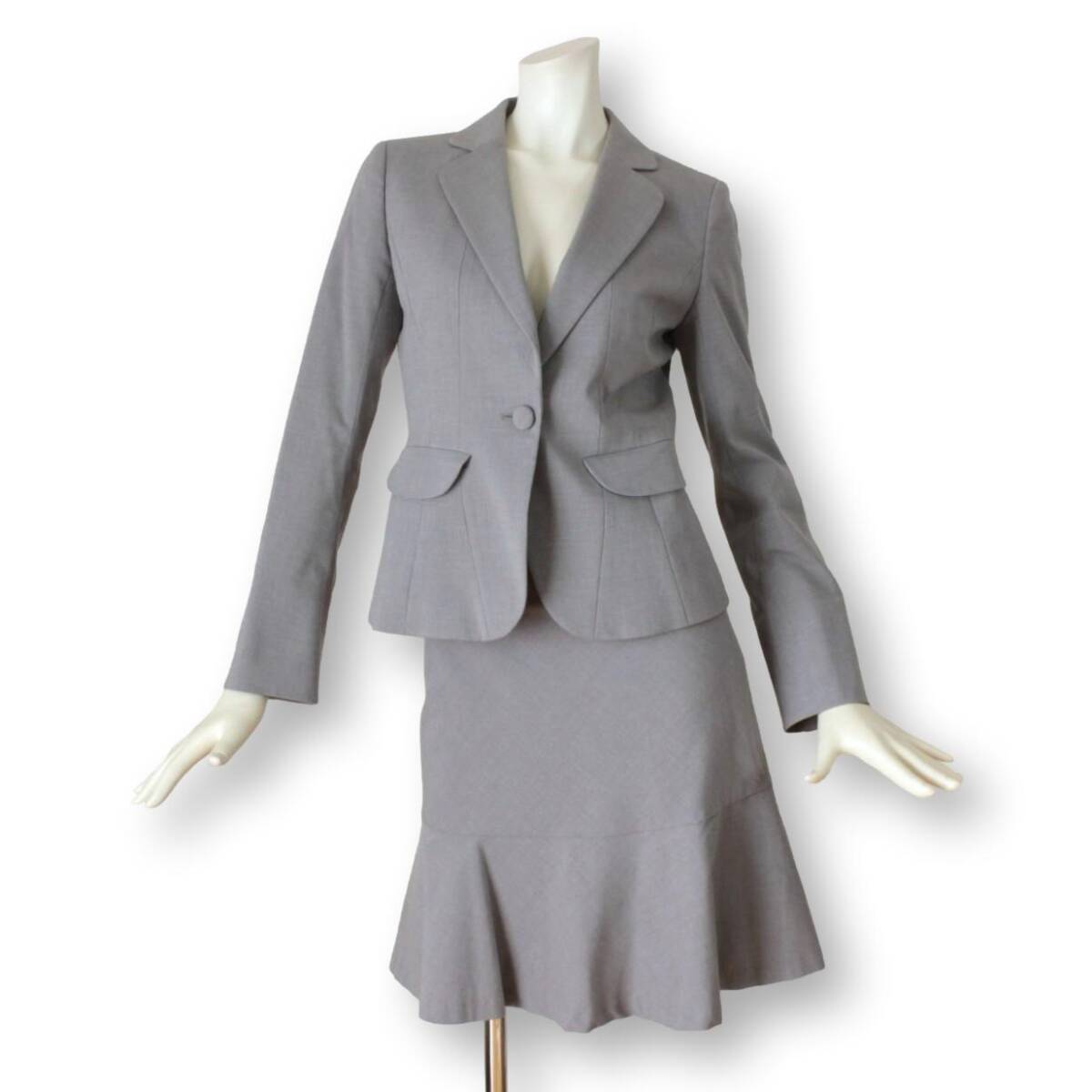> 07【新品同様】アンカーウーマン スカートスーツ 7 ★未使用に近い★ S グレー ストレッチ 洋服の青山 tqe ANCHOR WOMAN 春夏秋 ★極美品★
