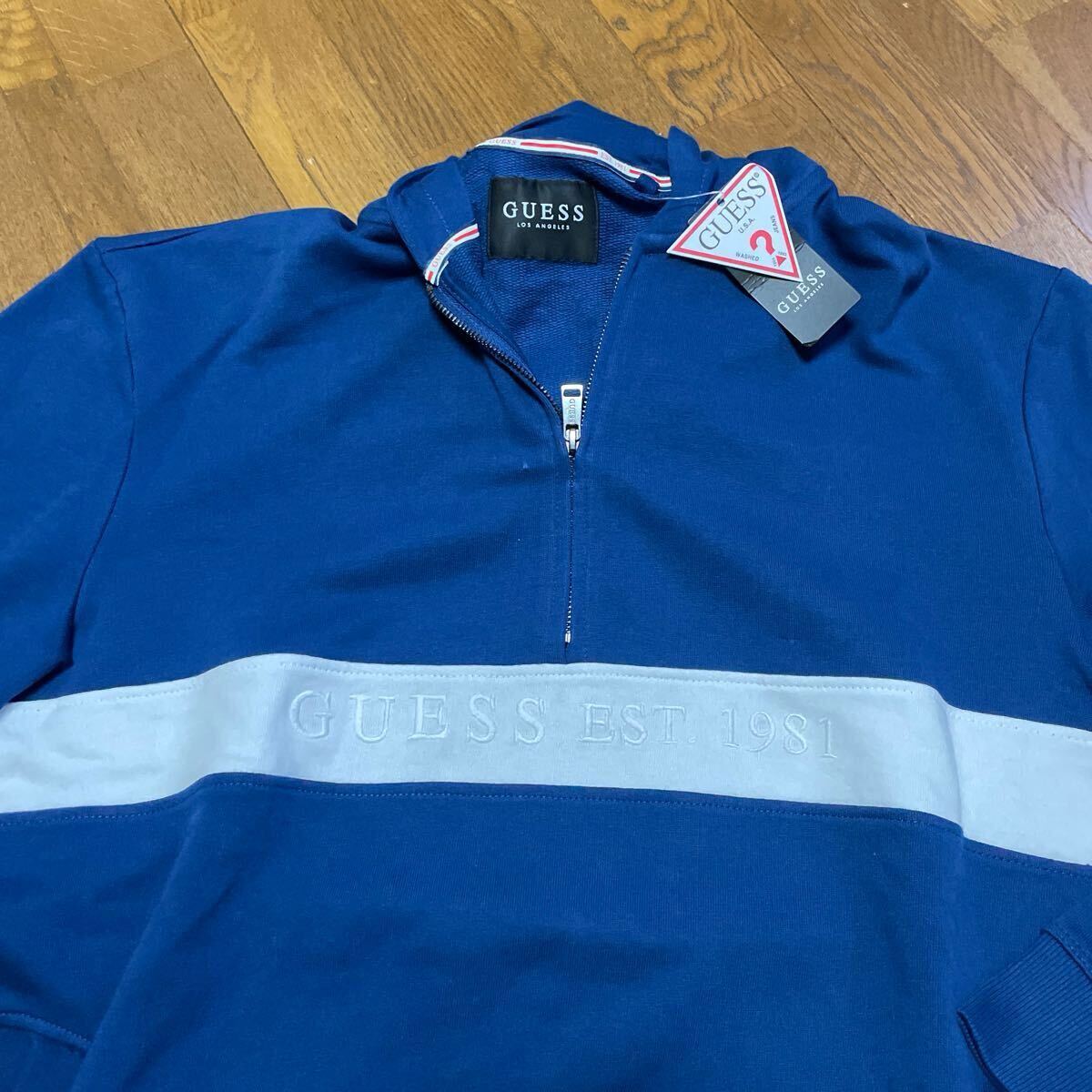 - 新品♪≪流行・トレンド≫GUESS ≪ゲス≫♪個性的に♪お洒落♪LOGO HOODIE PARKA ♪ブルー&ホワイト♪サイズL♪