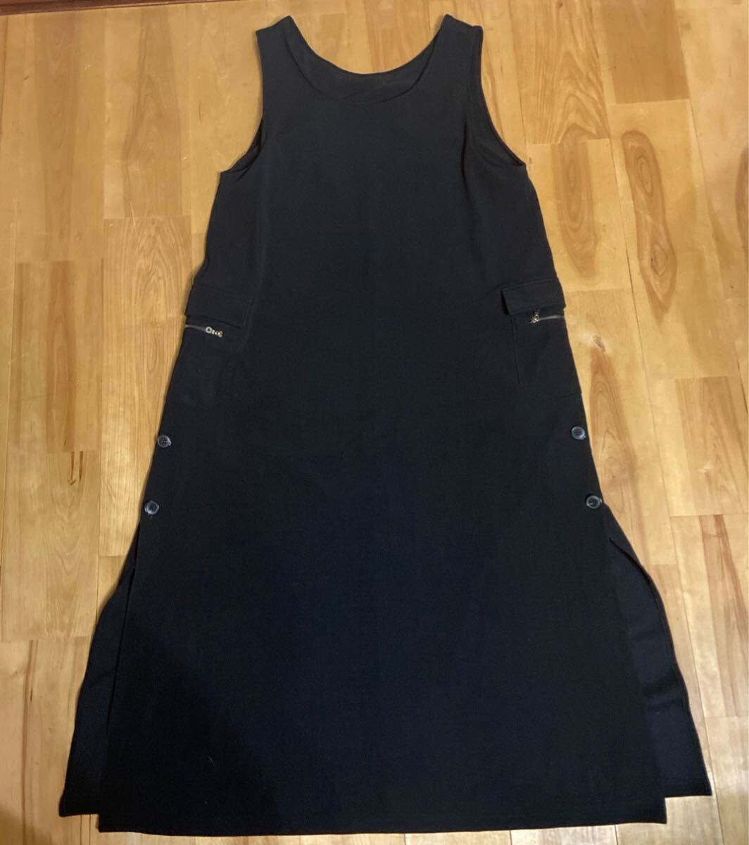 - ノースリーブ ジャンパーワンピース 厚手 スリットあり ブラック 黒 ロングワンピース