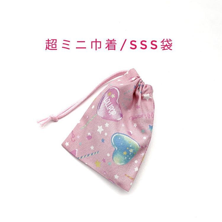 > 超ミニ巾着袋・SSS袋【ポップキャンディー柄 ピンク】マチ無し 日本製 ポーチ お菓子袋 小物入れ プレゼント ハート ロリポップ