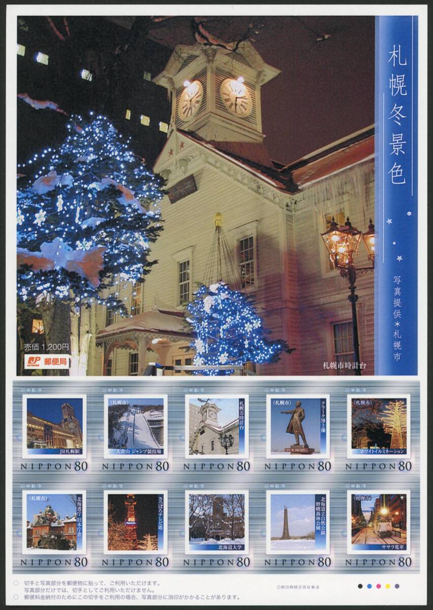 ●JR札幌駅、大倉山 ジャンプ競技場、札幌市時計台、クラーク博士像、ホワイトイルミネーション、北海道庁 旧本庁舎、さっぽろテレビ塔、北海道大学、野幌森林公園、ササラ電車、の各デザインです。