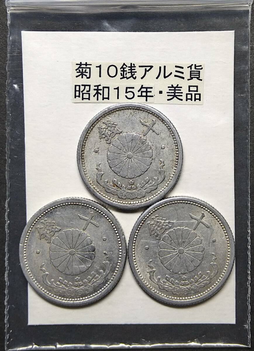 - 菊10銭アルミ貨・昭和15年・2(3枚)