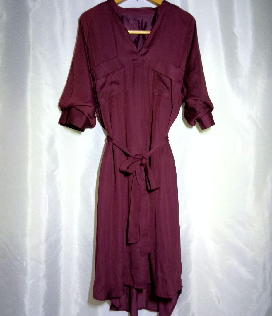- (株)ヤギ【3L】五分袖 ワンピース フォーマル 無地 大き目 エンジ系