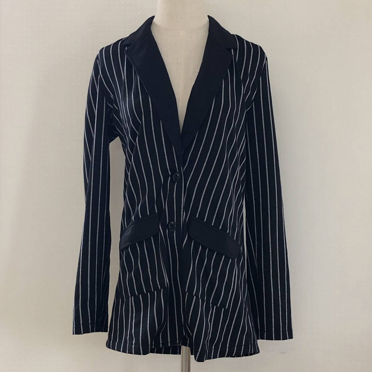 > YX1558 Liuosug レディース トップス ジャケット 長袖 薄手 伸縮性 4つ穴ボタン ポケット L ストライプ シンプル カジュアル おしゃれ 春秋