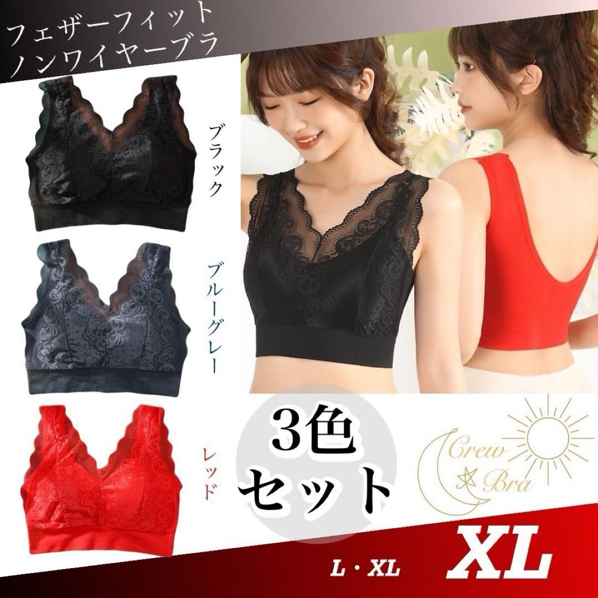 - フェザーフィット ノンワイヤーブラ XL 3色セット ブラ Crew bra