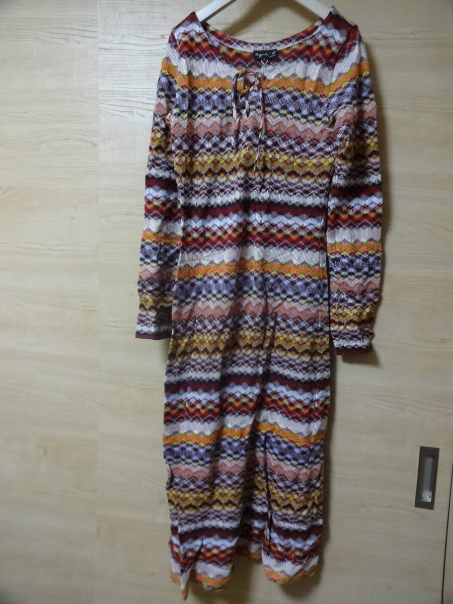 - agnis b. ニット ロングワンピース サイズ2 R8218 未使用タグ付き カラフル 定価30000円 レターパックプラス