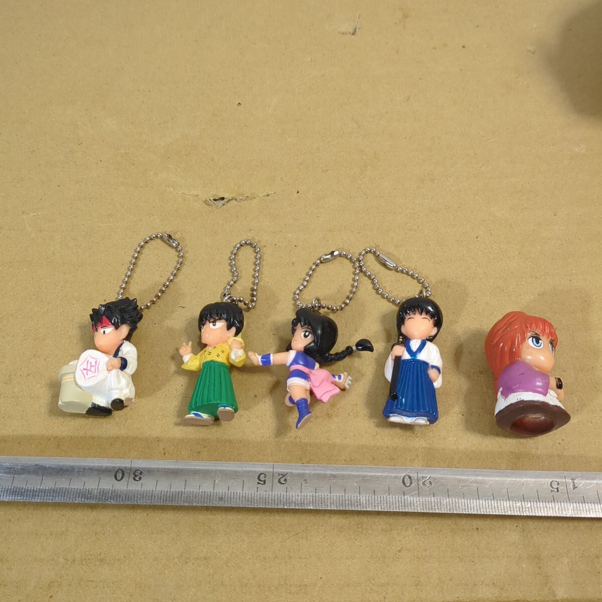 - るろうに剣心 るろ剣 キーホルダー 指人形 5点セット 相楽左之助 巻町操 瀬田宗次郎 明神弥彦 緋村剣心 BANPRESTO 未チェック ジャンク扱い