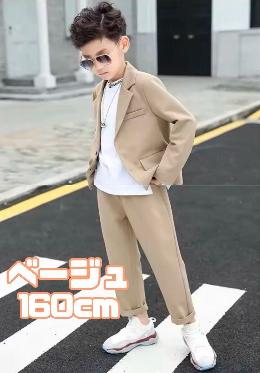 > セットアップ スーツ ベージュ 160cm ジュニア用 キッズ 男の子 フォーマル 結婚式 発表会 ジャケット パンツ