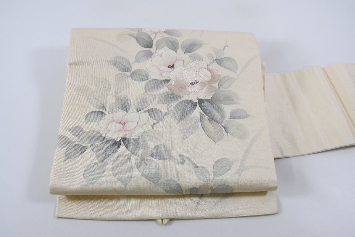 - 名古屋帯 作家 手描き 花 帯丈360cm ★着物屋 ne-13971 桜庭呉服店