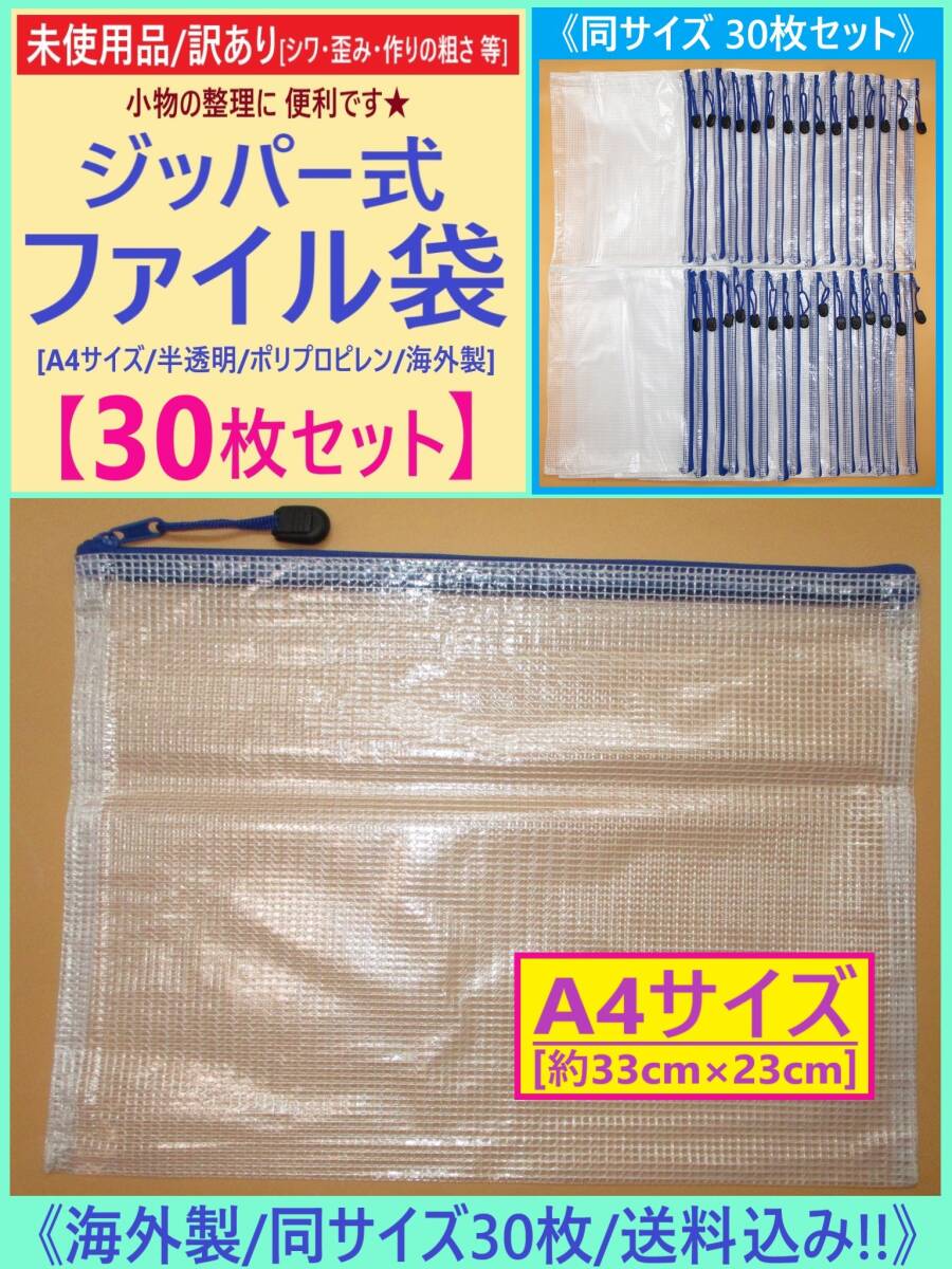 - 訳あり 未使用 ジッパー式 ファイル 袋 A4サイズ 30枚 B シワ 歪み キズ 半透明 白 メッシュ ファスナー チャック ケース 33×23 海外製