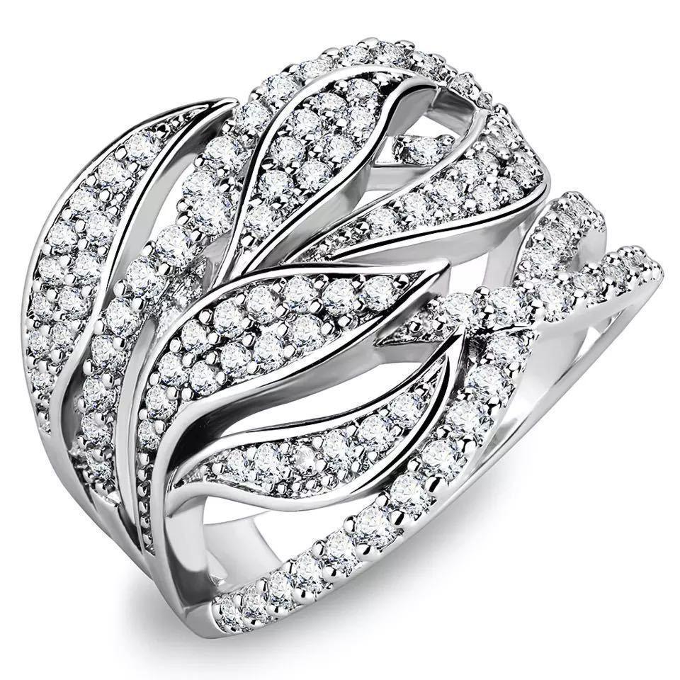 - パヴェリング リーフ 指輪 リング ジルコニア 9号 11.5号 ごつめ シルバー 大人 おしゃれ レディース 新品
