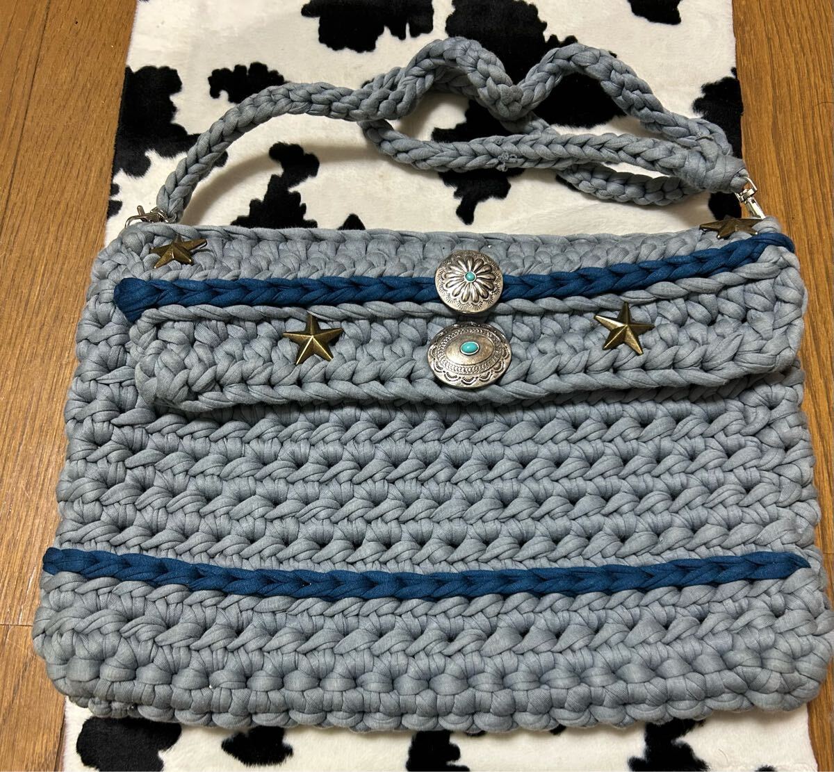 - くすみブルー☆コンチョ☆ショルダーバッグ☆中古
