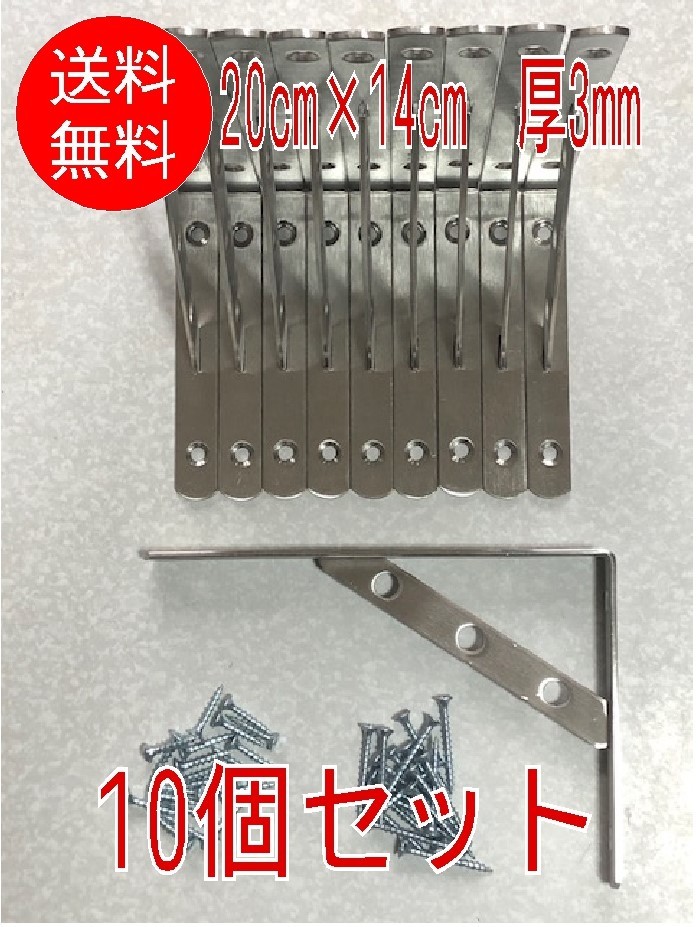 > 【10個セット】■棚受け 20cm×14cm 【中】金具■厚3mm L型 ステンレス鋼 アングル ブラケット 壁掛け ヘアーライン