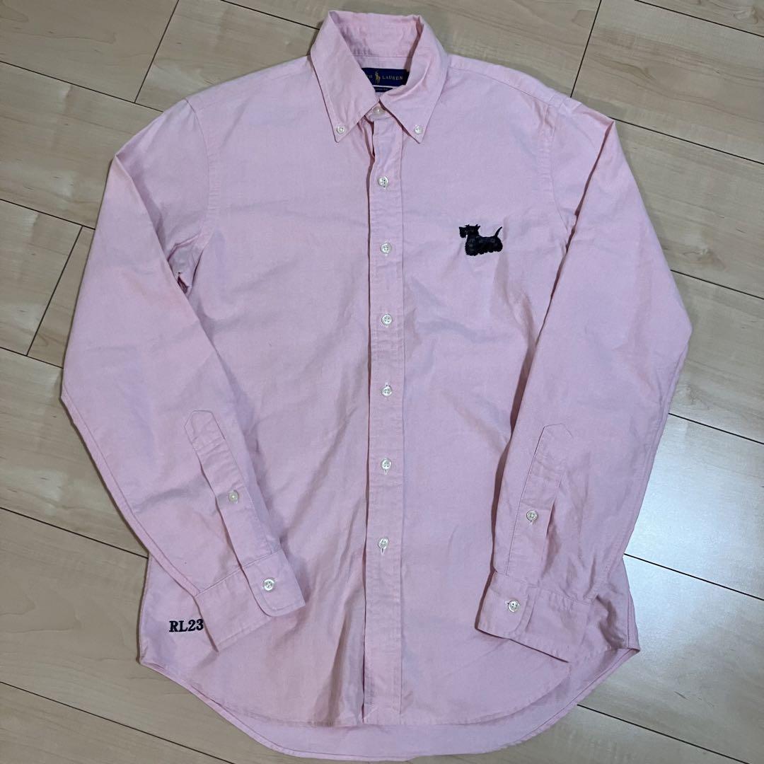 - 激レア POLO RALPH LAUREN ポロラルフローレン ヨークシャテリア刺繍 長袖シャツ クラシックフィット 犬 ドック ピンク XSサイズ