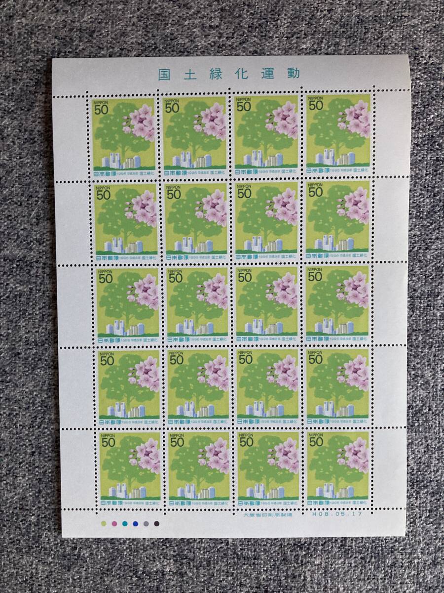 - ★未使用 国土緑化運動 ソメイヨシノ 桜 副都心 東京 1996年 平成8年 切手シート 50円 20枚 日本郵便