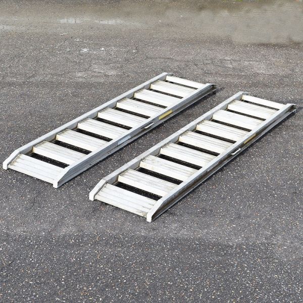 - 【新潟発】アルミブリッジ 左右セット 全長 約215cm 幅 約 45cm ラダー 歩み板 あゆみ板 積載 自走式 農機具 工具 中古 北陸