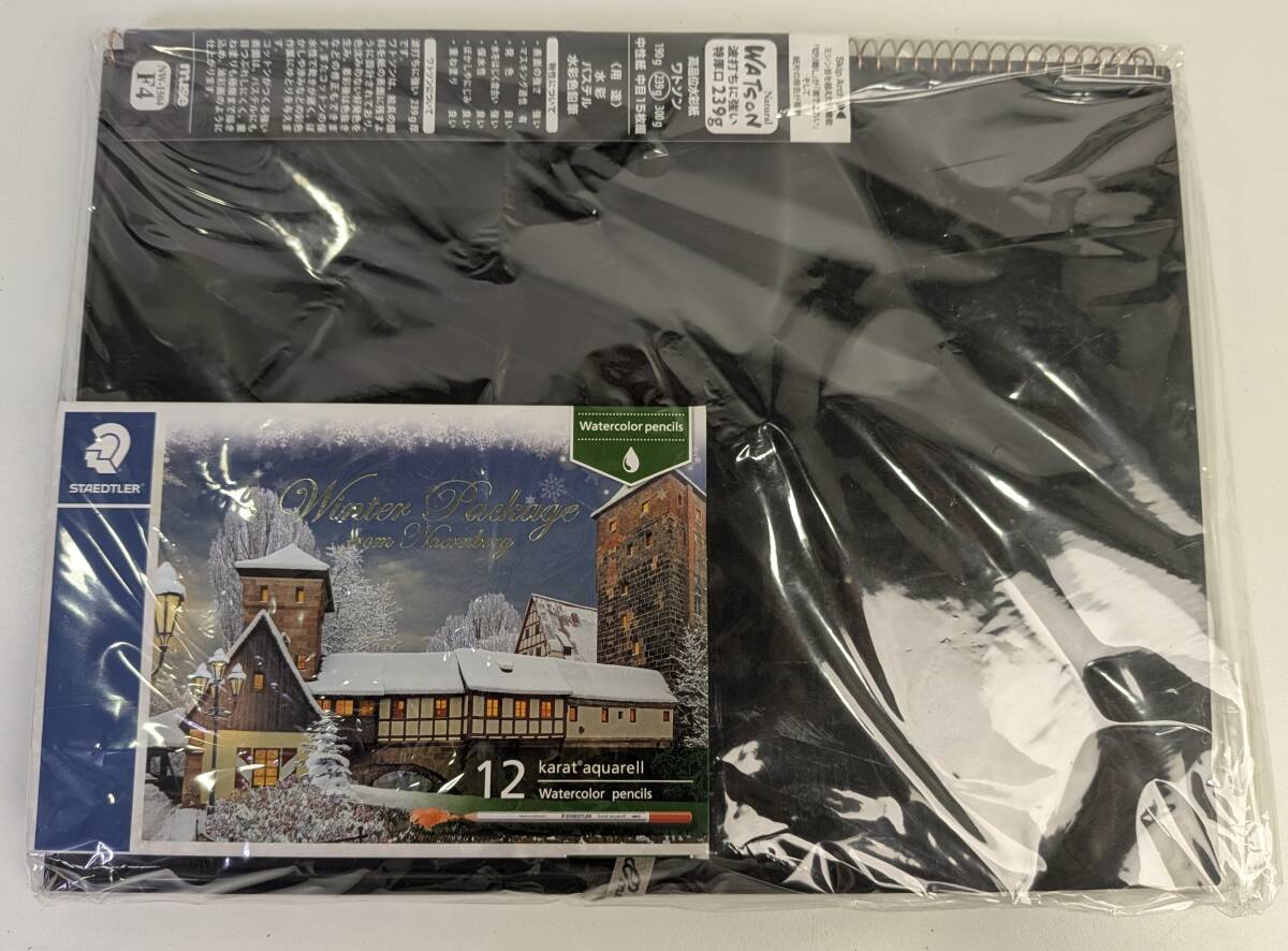 > □[未使用品]Muse WATISON スケッチブック NW-1504 239g 中目 15枚組 / STAED TLER ステッドラー 水彩色鉛筆 12color ウィンターパッケージ
