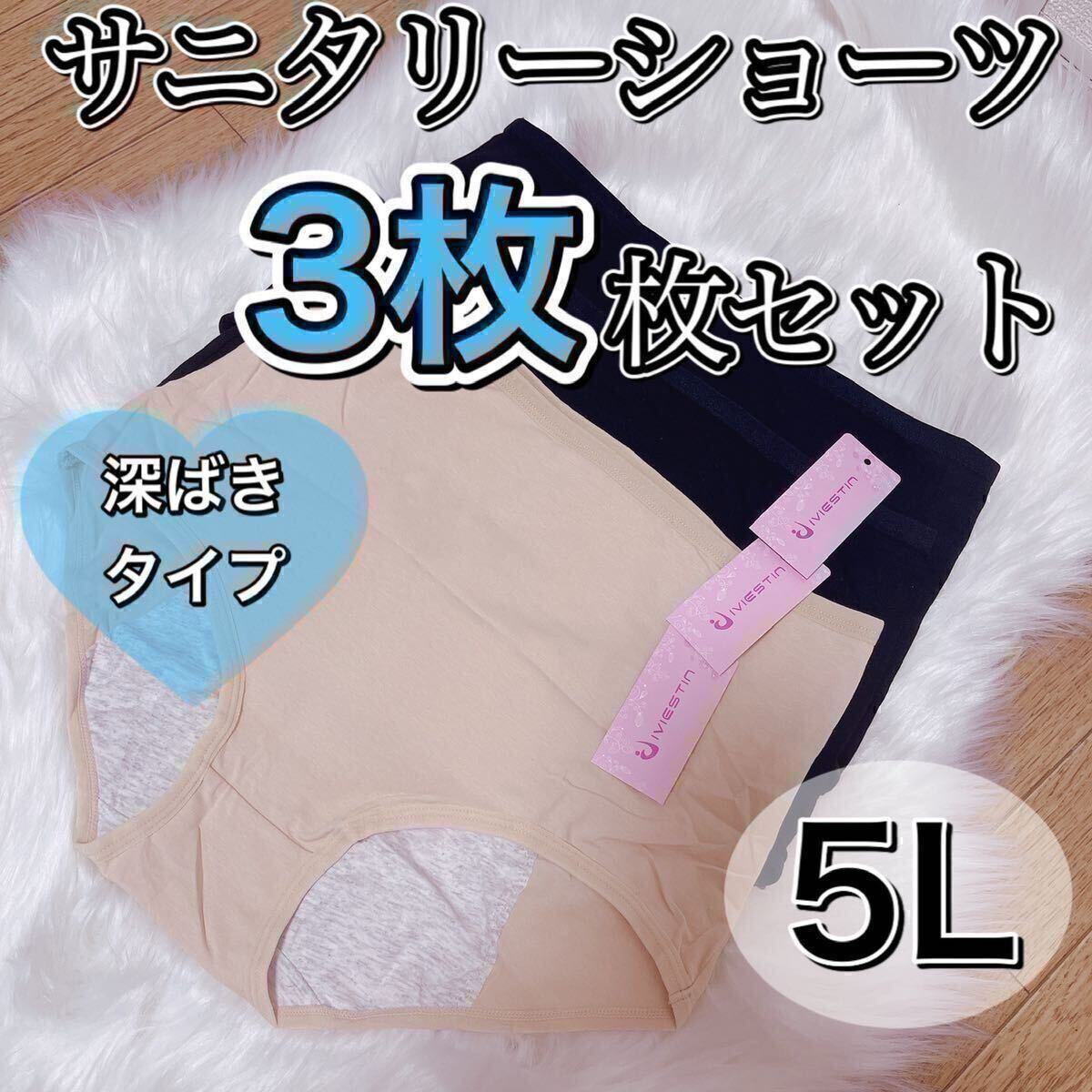 - サニタリー ショーツ 3枚セット ブラック 黒 生理パンツ 5L 4XL 産褥 深ばき 下着 生理パンツ ベージュ 肌色 ハイウエスト パンツ XXXXL