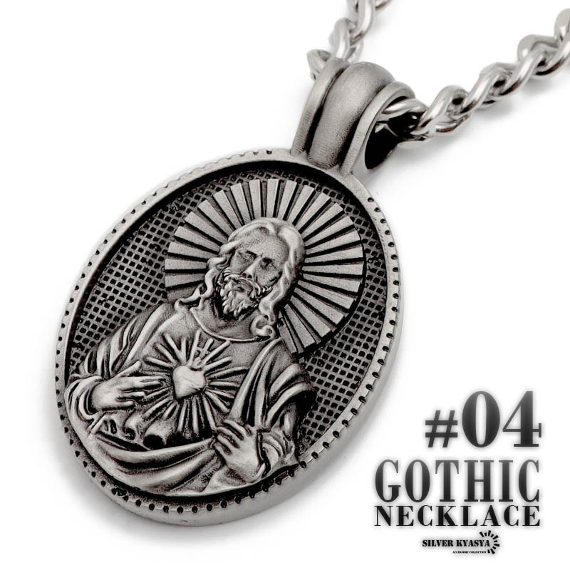 - ゴシックトップネックレス キリスト イエス ハート カトリック メダイ ペンダント ブラック 黒 喜平チェーン ステンレス