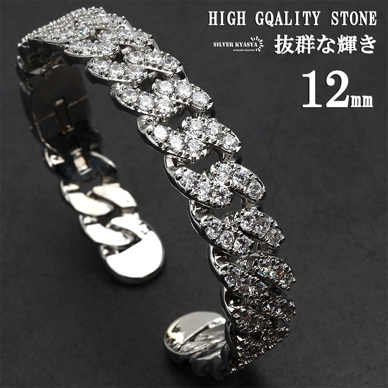 - B系バングル シルバー マイアミキューバンチェーンブレスレット 喜平ブレスレット メンズ キラキラ パヴェ ダイヤ CZ