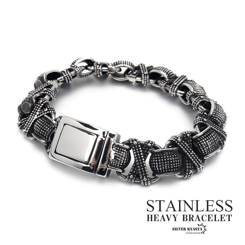 - 重厚 チェーンブレスレット メンズ ブレスレット 編み込み ミル打ち ごつめ ごつい ステンレス 316L 金属アレルギー対応