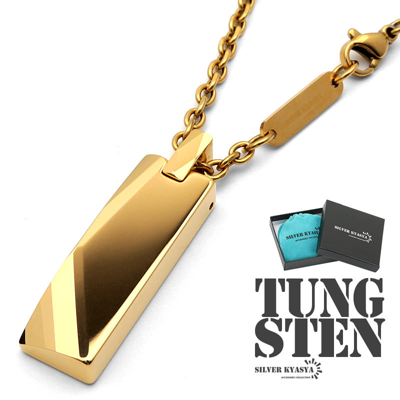 - タングステン エッジカット ネックレス メンズ ゴールド 金 ステンレス アズキチェーン 金属アレルギー ボックス付属