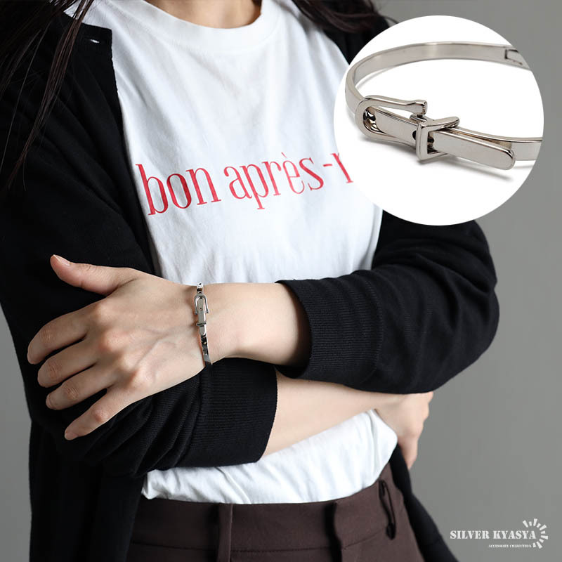 - シルバー925 ベルトブレスレット シルバー ベルトバングル 腕輪 細身 金属アレルギー対応
