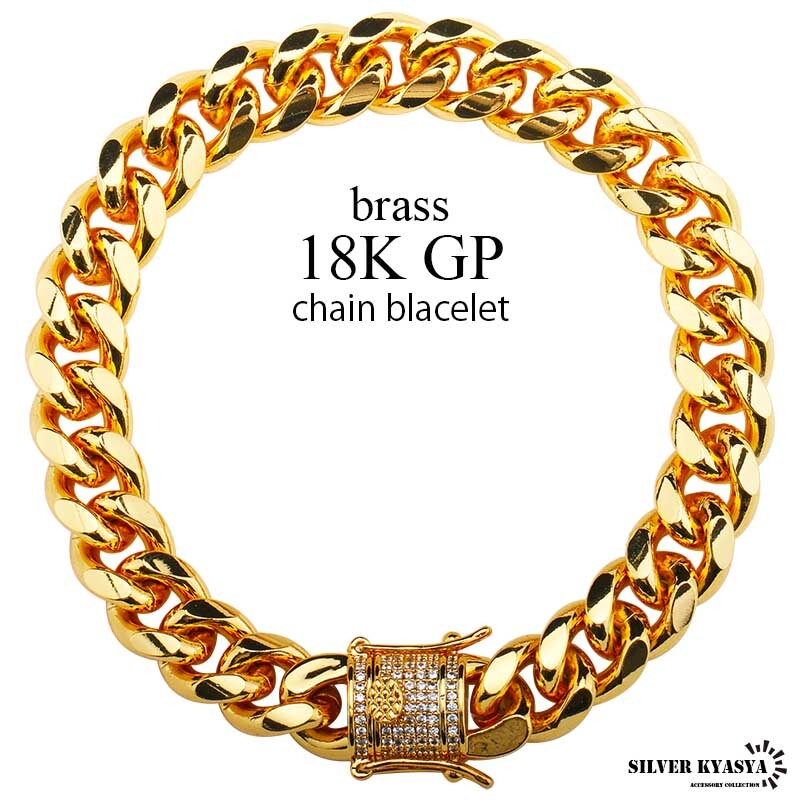 - マイアミ キューバン チェーンブレスレット 喜平 ゴールド 金 CZ HIP HOP B系 専用BOX