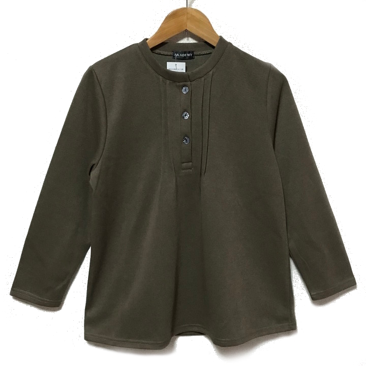 - ■新品■ タグ付き 胸タック飾り 長袖 カットソー M L サイズ カーキ ブラウン 深緑 茶 秋 冬 春 カジュアル ミセス レディース AK19