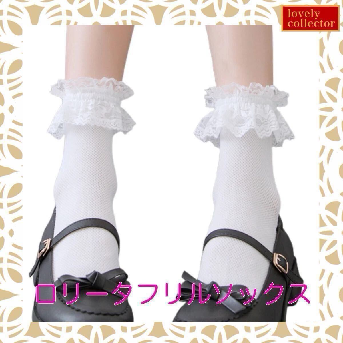 - レディースソックス ショート 靴下 エレガントロリータ フリル 白 ホワイト