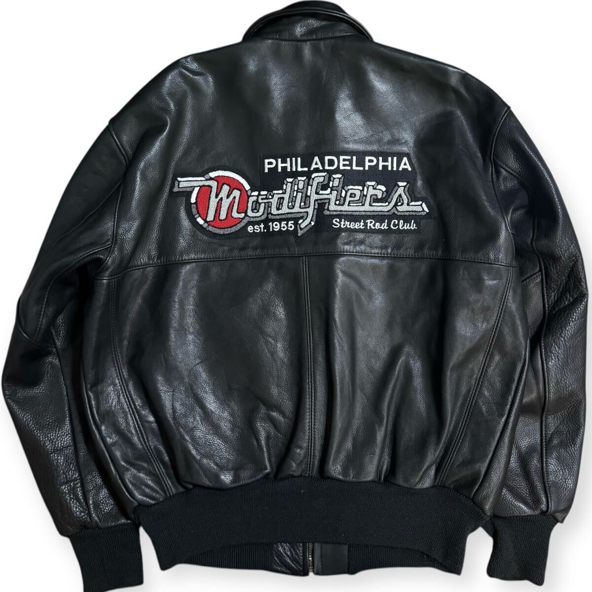 - 稀少 美品 Delong USA製 ビンテージ modifiers 45周年記念 刺繍ワッペン オールレザージャケット Lサイズ ブラック ビッグサイズ