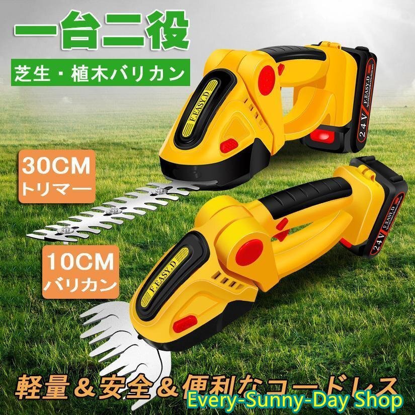 - 草刈り機 草刈機 2WAY コードレス 充電式 家庭用 芝活 24Vバッテリー互換対応 替刃 電動チェーンソー 植木 芝生 軽量 バッテリー*1