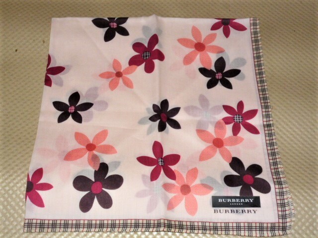 - バーバリー BURBERRY ピンク ポップ 花柄 縁ノバチェック ハンカチ 正規品 新品 B61