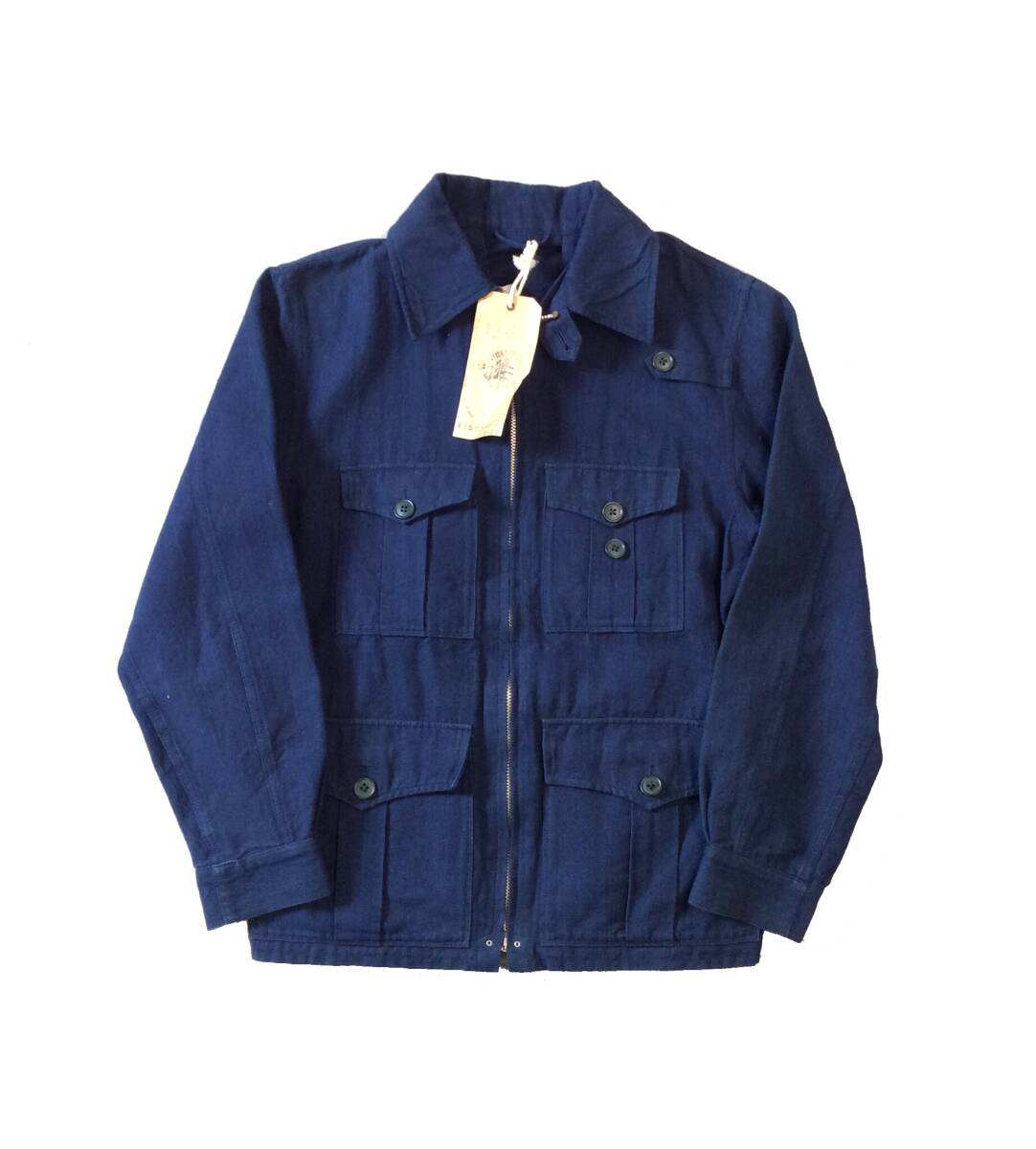 > THE RUGGED MUSEUM ラギッドミュージアム インディゴ リネン フィッシングジャケット ハトメ ジャケット カバーオール メンズ 38