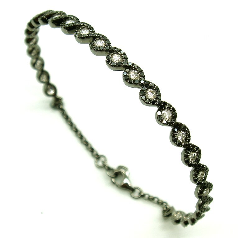 - BR42:K18WG(部分黒メッキ) ダイヤ 黒ダイヤ バングル ブレスレット