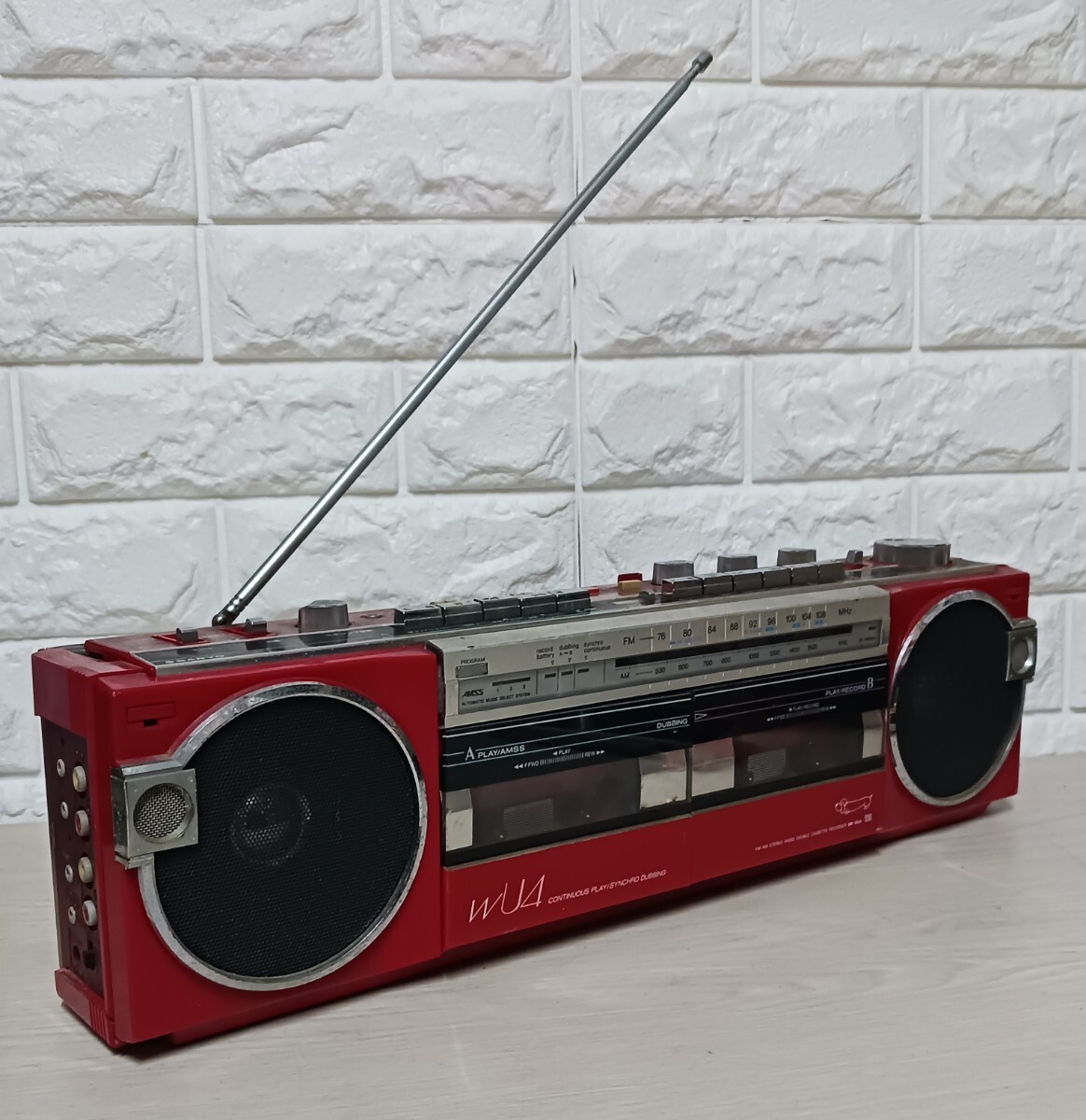 - MR-WU4 SANYO ラジカセ 昭和レトロ カセットデッキ 赤 ラジオ FM サンヨー (G1)