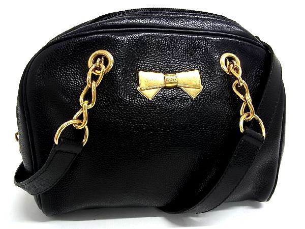 > NINA RICCI ニナリッチ ショルダーバッグ リボン レザー ブラック 黒 ゴールド チェーン ヴィンテージ アンティーク パーティ NINARICCI