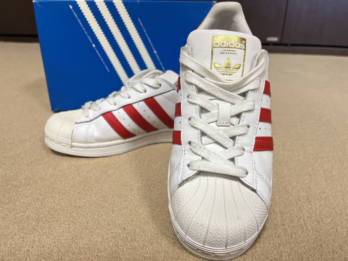 - 箱付 アディダス adidas レディース レザースニーカー SUPERSTAR ホワイト レッドライン 5 1/2(23.5cm)