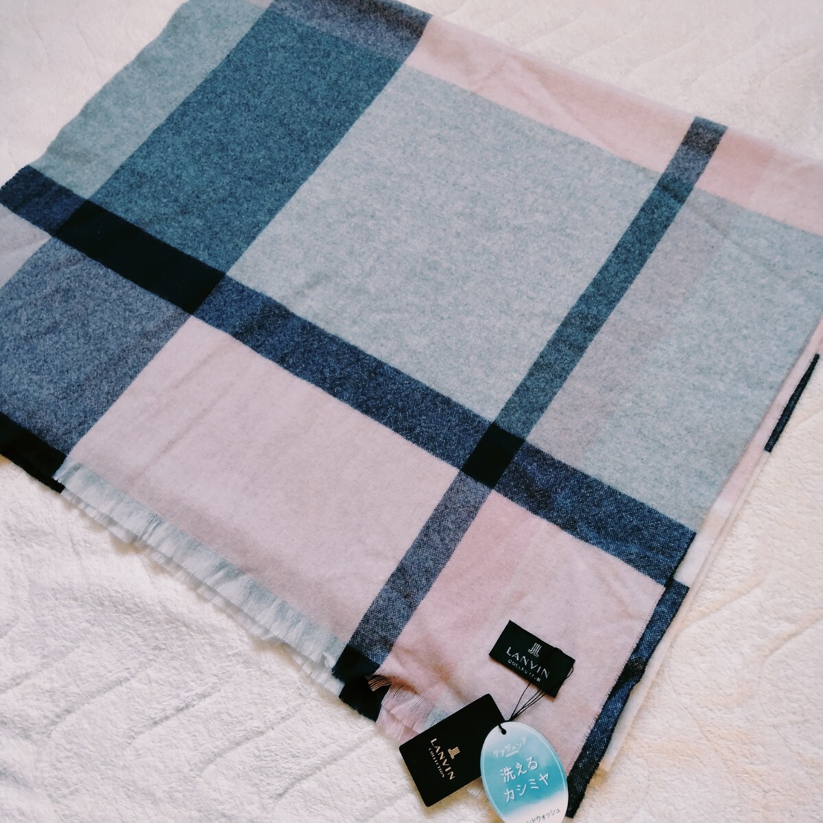 > 未使用*LANVIN COLLECTION*ランバン コレクション*カシミヤ100%*洗える*マフラー*ストール*チェック柄*大判*ピンク*カシミア*ショール