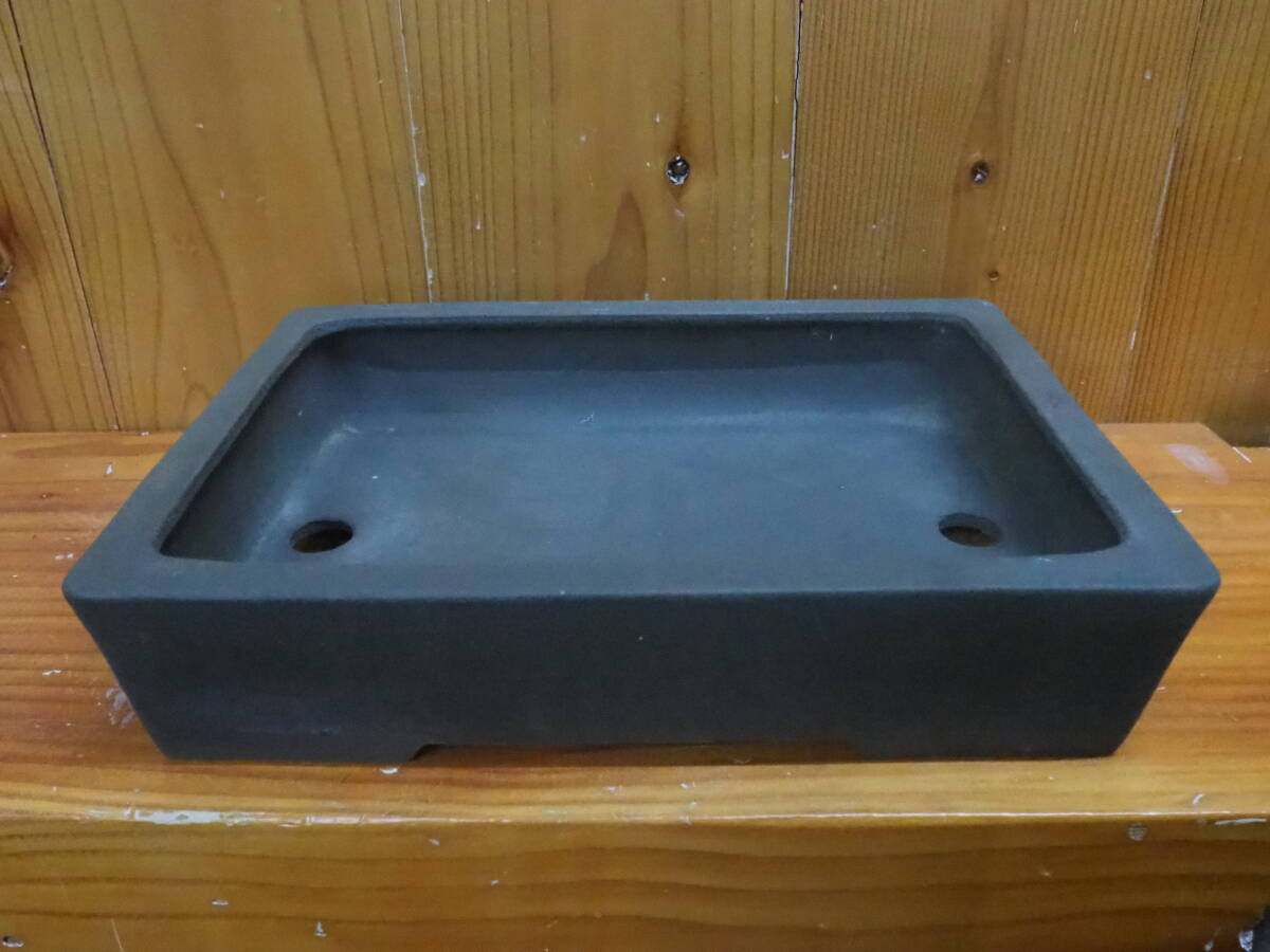 - 【常滑焼片岡秋次造 銀ネズ長角切立盆栽鉢】植木鉢焼き物ガーデニング日本庭園旅館陶芸デッドストック古道具アンティーク骨董古民具古美術