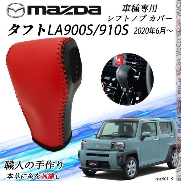 - タフト シフトノブ ダイハツ DIY 本革材質 内装カスタム パーツ アクセサリー爪キズ防止 車種設計 LA900S/910S 2020年6月~ cbt1番赤色
