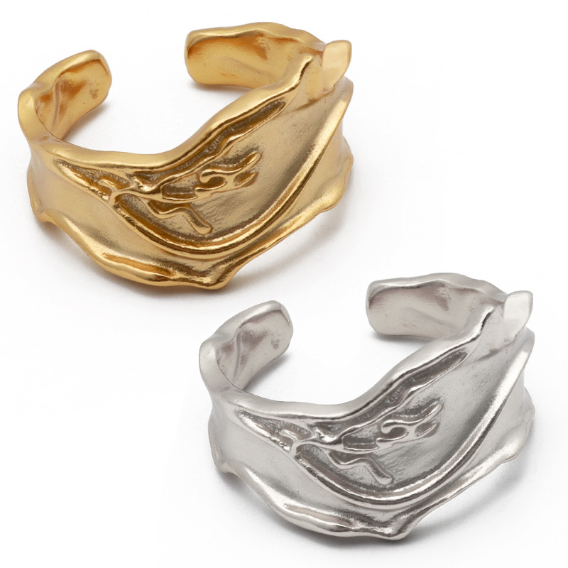 - (シルバー) シルバー925 リング 指輪 シルバー シンプル 無造作 ニュアンス ライン 18KGP ゴールド フリーサイズ