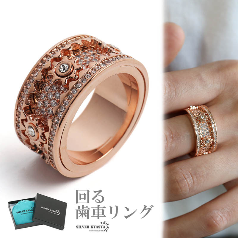 - (26号) キラキラ 機械美 リング ローズゴールド 歯車リング 指輪 はぐるま ギミックリング 可動リング 専用BOX付属