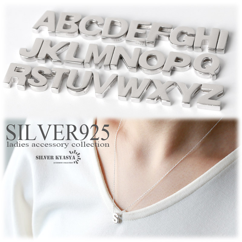 > (X) シルバー925 イニシャルペンダント ネックレス レディース 可愛い 頭文字 アルファベット あずきチェーン45cm
