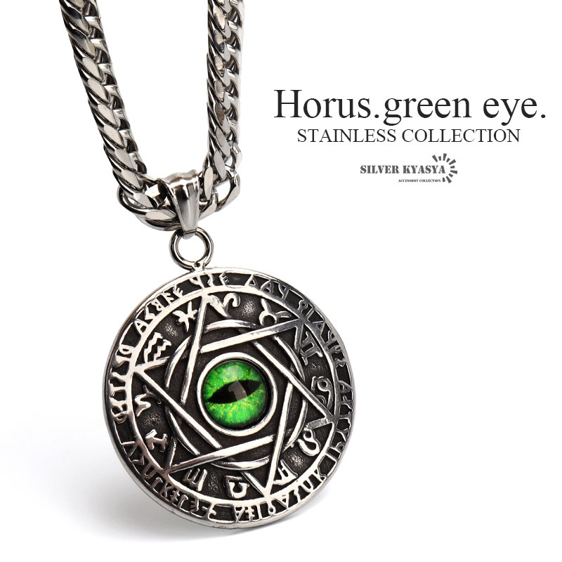 - (50cm) ステンレス製 メダルネックレス シルバー グリーン ダブル喜平チェーン 六芒星ネックレス 金属アレルギー対応