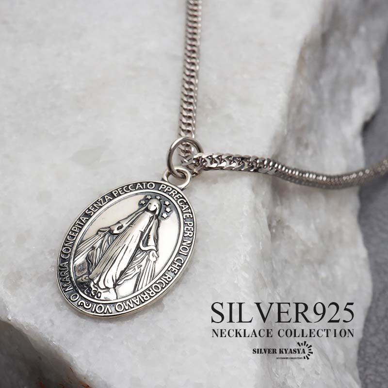> (50cm) シルバー925 マリア コインネックレス シルバー 細身 6面カット ダブル喜平 不思議のメダイ 金属アレルギー対応