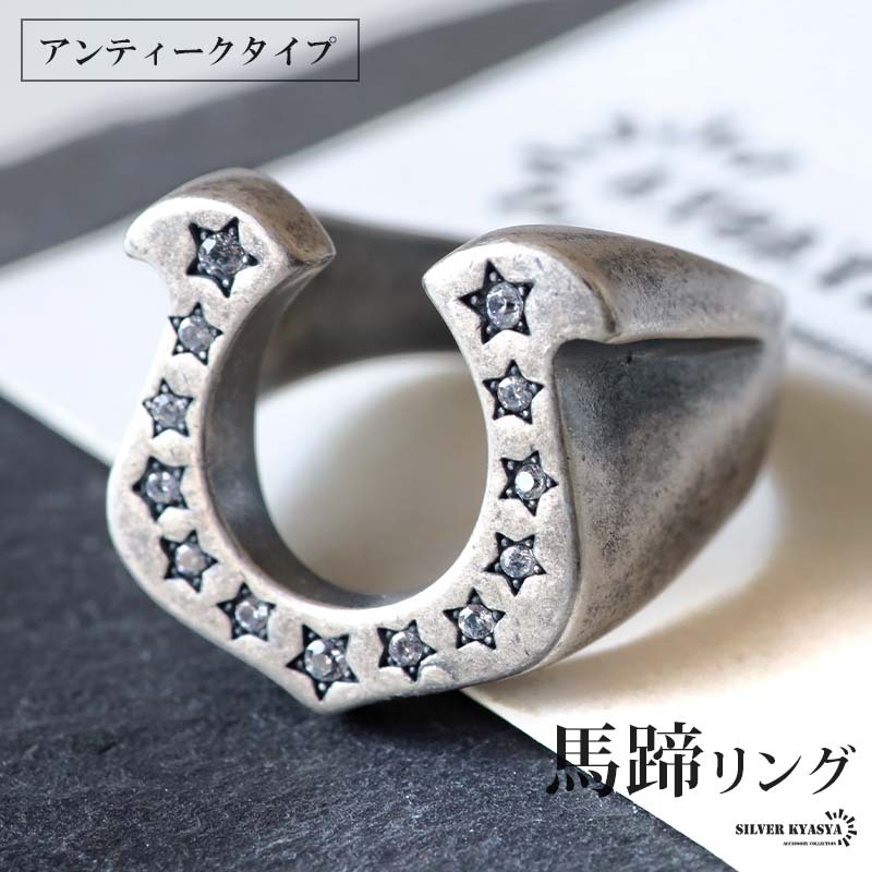 - (10号) 馬蹄リング アンティーク シルバー ホースシューリング 印台リング マット 燻し ごつめ 太幅 ワイドリング 指輪