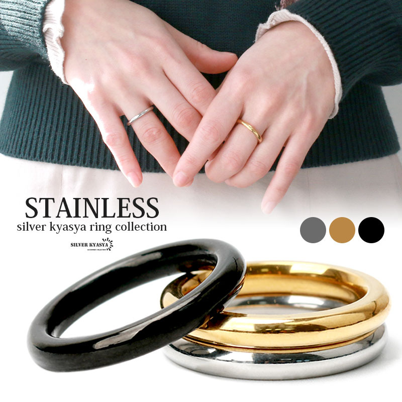 - (ブラック、5号) 甲丸リング ステンレスリング シンプル 細身 シルバー ゴールド ブラック 重ね付けリング対応